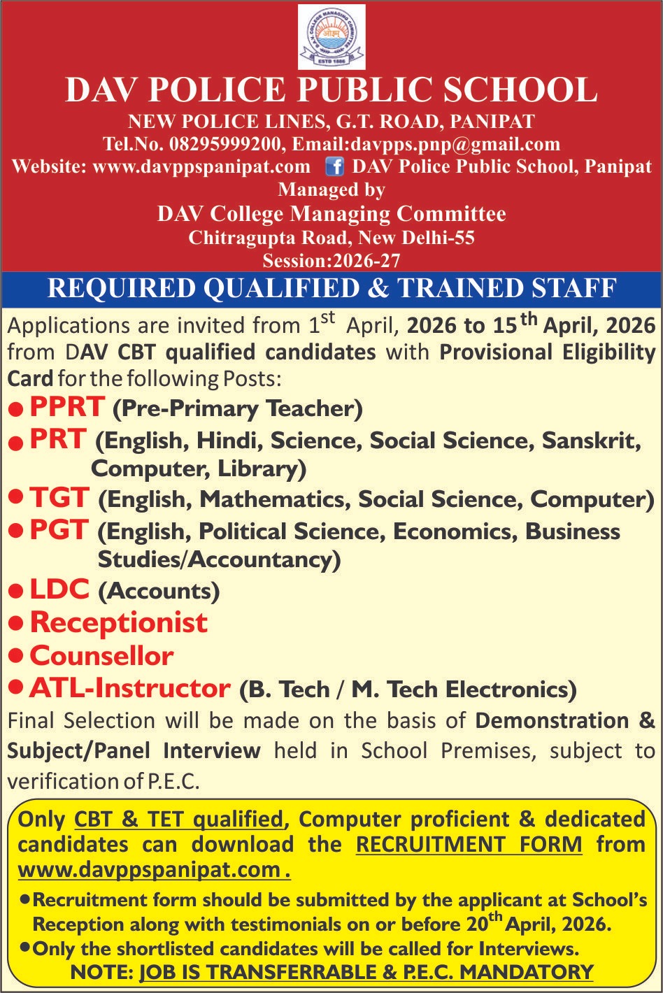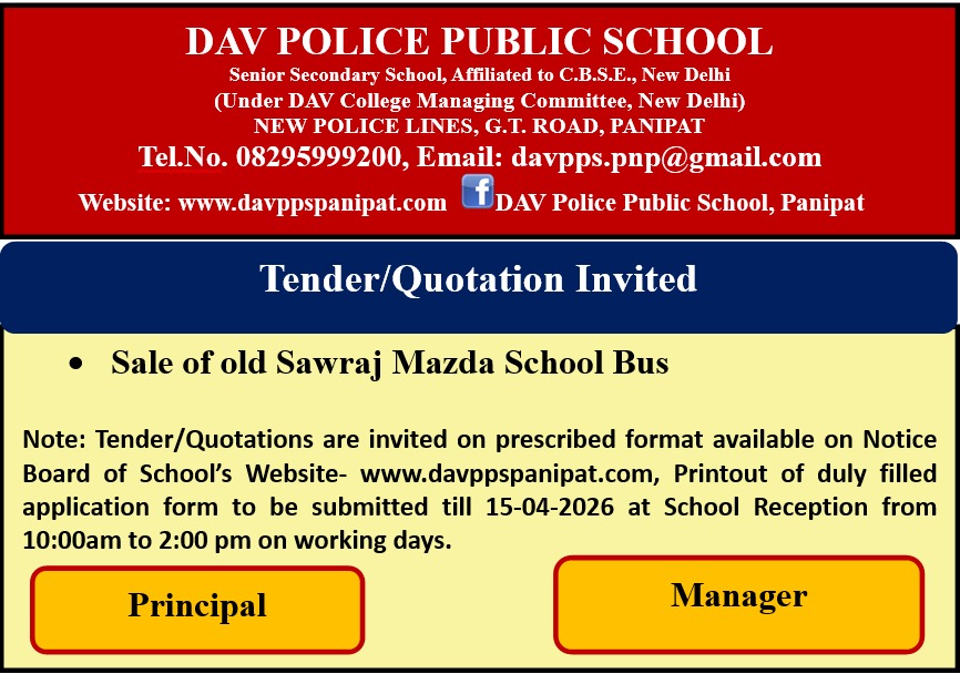D.A.V. POLICE PUBLIC SCHOOL New Police Lines, G.T.Road, Panipat - 132103, Haryana Phone :- +91-8295999200 E-Mail :- [email protected] Website :- davppspanipat.com